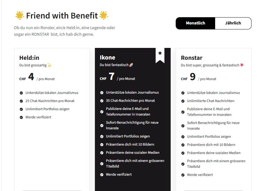 Hier findest du eine Übersicht über die Kosten der verschiedenen Abo-Optionen: