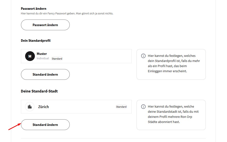 Startseite switchen kannst du ganz einfach, wenn du oben links die gewünschte Stadt auswählst. Willst du jedoch die Stadt deiner Startseite festlegen, gehe zu «Account, Support & Kontakt» und wähle deine Stadt aus.